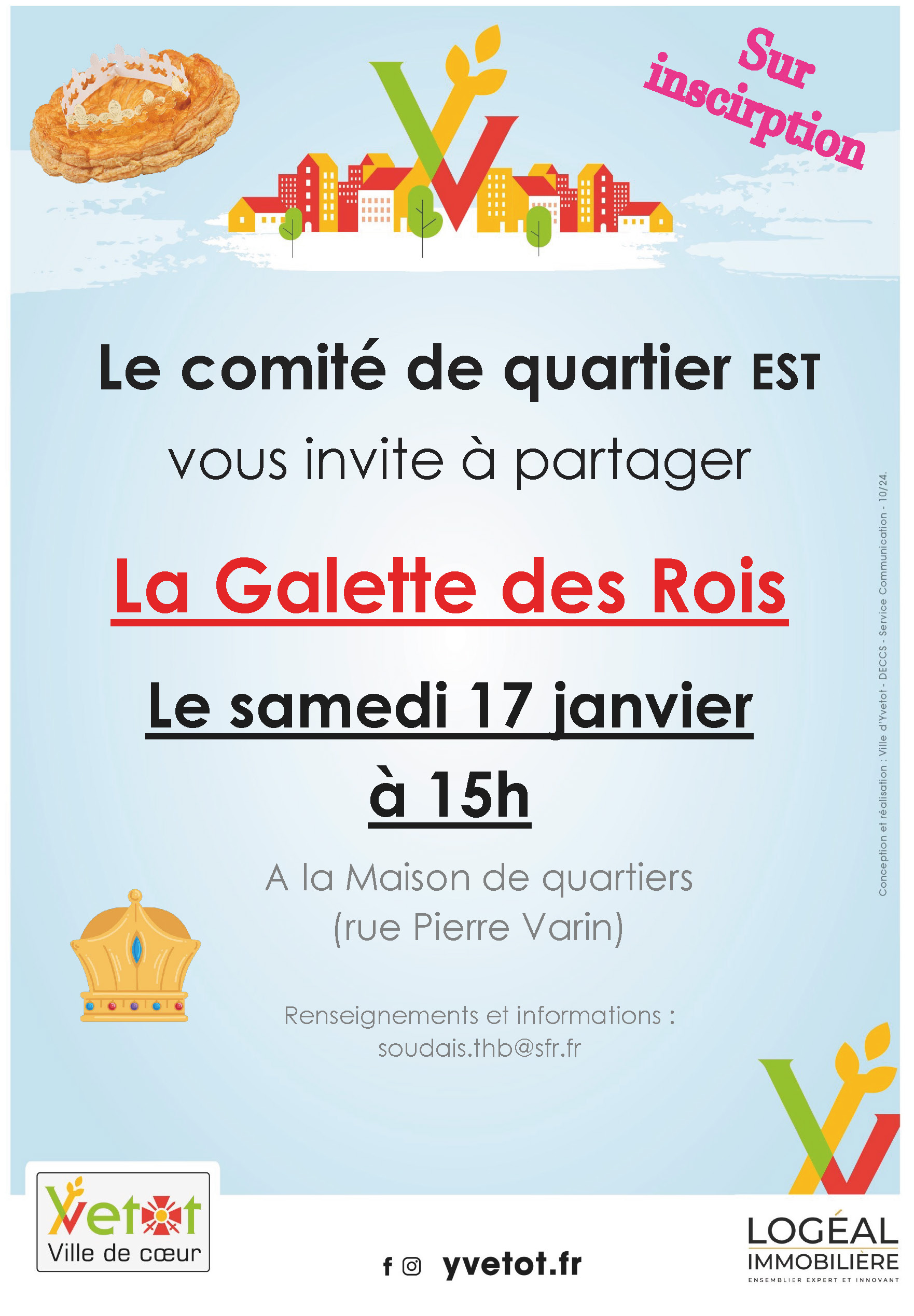 👑🥧 Yvetot et le Comité de quartier EST invitent les habitants de ce quartier à partager la Galette des Rois ! 🥧👑