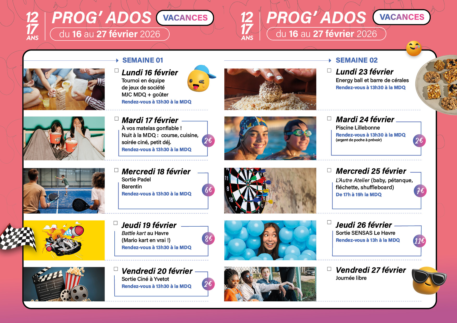 La Maison de Quartiers d’Yvetot propose un programme pour les 12–17 ans pendant les vacances de février 2026 🙌